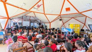 Sous le haut parrainage du Dr Paubert Mahatante, Ministre de la Pêche et de l’Économie Bleue de Madagascar, et en présence du Président de l’Organisation Panafricaine de la Jeunesse pour l’Économie Bleue (OPJEB), M. Ernest TINDO, les enfants de la ville de Toliara ont suivi avec attention ledit film qui ne les avait pas laissés indifférents. Dès 15h, le comité d’organisation était sur place pour accueillir les participants, notamment les écoliers et élèves de Toliara, conviés à cette activité pédagogique et interactive. Après l’installation des enfants, la séance a débuté avec une série de mots introductifs.